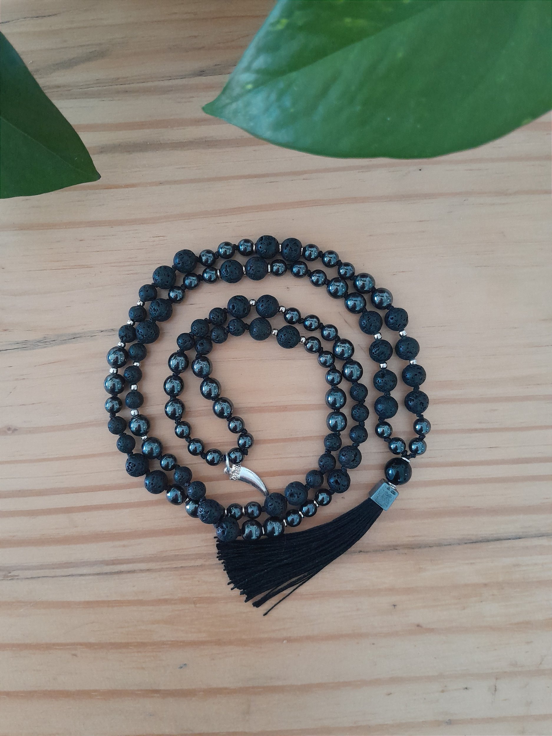 Japamala Hematita e Pedra Vulcânica- Amuleto de Proteção e Transformação